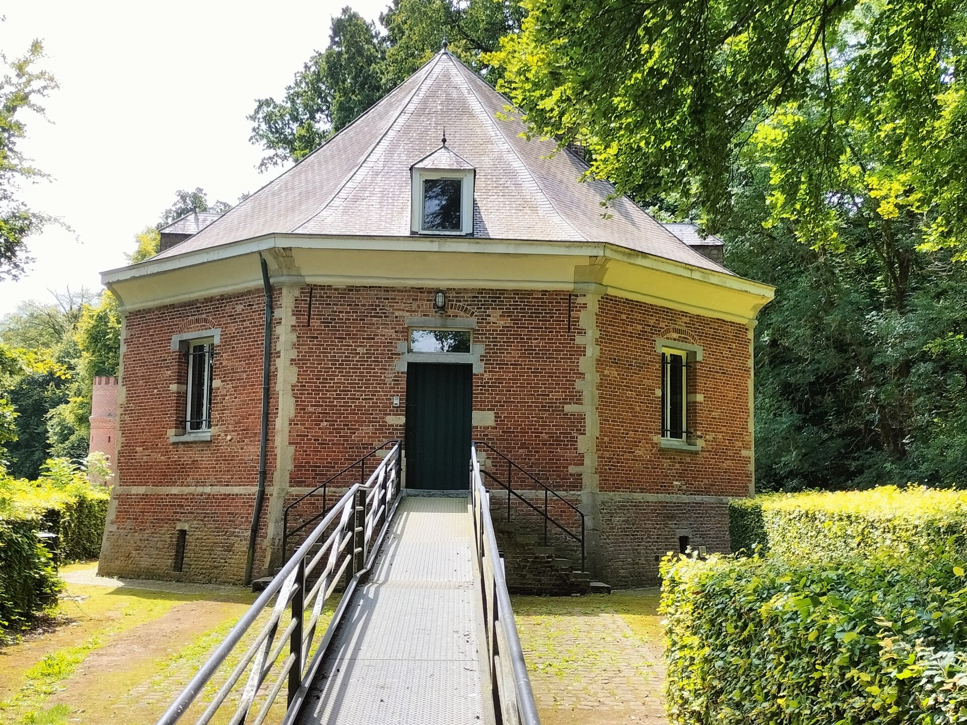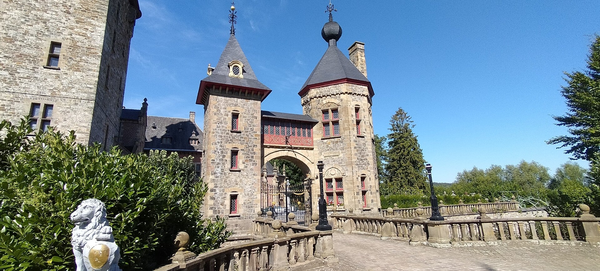 Het kasteel van Antoing is tijdens ons bezoek niet geopend omdat dat vanaf mei het geval is. Dus rondom lopen in de hoop wat te zien. En heel toevallig ging even een poort open en maakte ik snel een kiekje.
